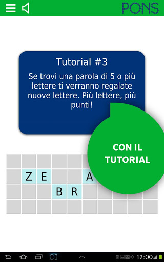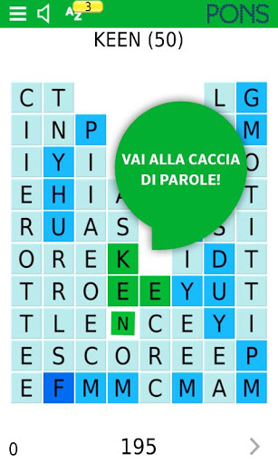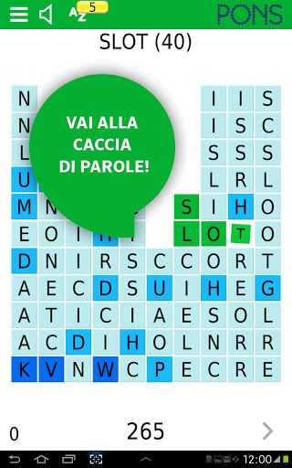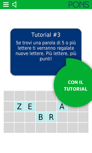 In treno, al semaforo, a casa sul divano: con la app SpellFlash di PONS puoi imparare i vocaboli in qualsiasi momento e con grande divertimento. Lo scopo del gioco è quello di formare le parole più lunghe possibile partendo da un insieme di lettere. Più lunga è la parola che si forma, tanto più alto sarà il punteggio assegnato. Grazie alla modalità Smart è possibile scoprire nuove parole e cercare il loro significato in modo rapido e semplice. La parola d’ordine è: trovare parole, raccogliere punti e ottenere il punteggio massimo!