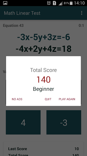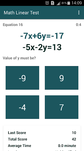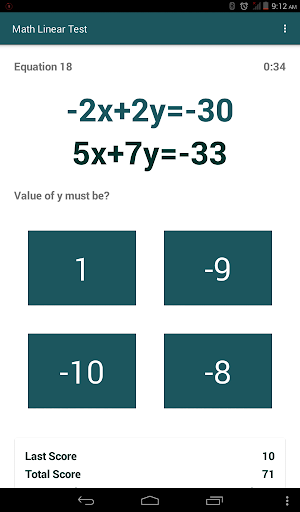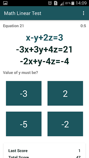 Math Linear Test is simple math game that provided to you several linear math equation. The game play is simple, you just choose what the value must be x,y or z