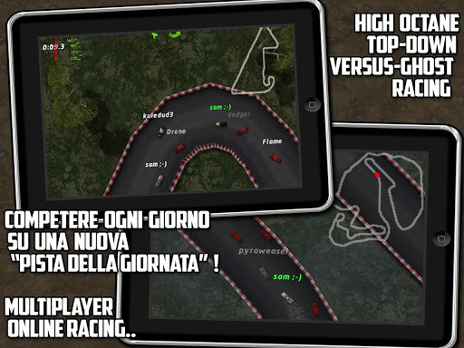Massively multiplayer online gioco di corse. Corsa contro le registrazioni fantasma dei tuoi amici e giocatori di tutto il mondo. Progettare e condividere i propri circuiti. Raccogliere più di 100 auto e li gareggiare in 11 classi. Competere su una nuova pista ogni giorno. Gioca in 3D o dall'alto verso il basso in 2D!