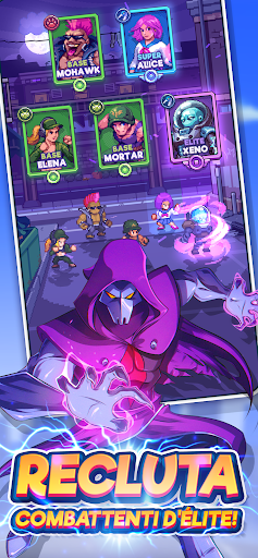 Forma una squadra con i migliori combattenti in pixel a 16 bit e guardali mentre affrontano nemici, boss e altri giocatori da tutto il mondo. Arma i tuoi cittadini espandendo la tua attività con i negozi di armi: gli affari andranno avanti anche quando sei offline!
