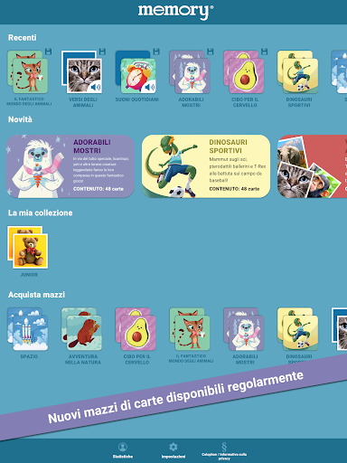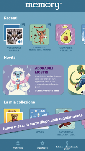L'app memory® di Ravensburger include moltissimi mazzi di carte classici e inediti. Inoltre, vengono aggiunti regolarmente nuovi mazzi che possono essere provati gratuitamente.