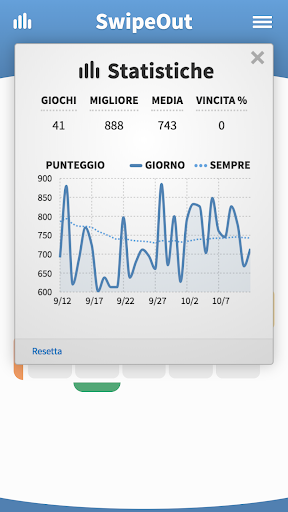 Mentre giochi, tieni traccia dei tuoi punteggi SwipeOut migliori e medi con il tracciamento statistico.