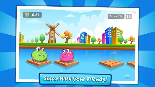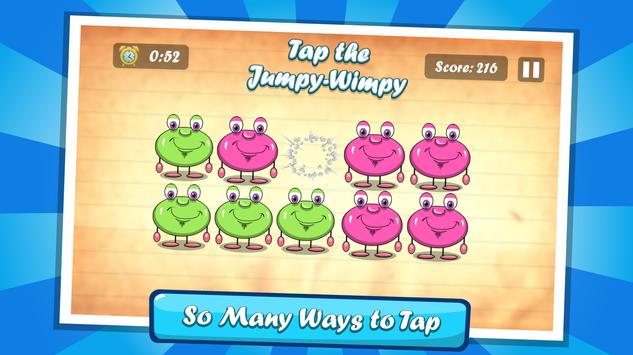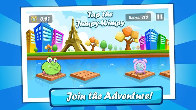Join Jumpy as he embarks on an adventure that will take him from the Comfort of his home pond to the farthest reaches of outer space. Do you have what it takes to help Jumpy pop, paint, jump, and build his way to victory? If so, jump in and see how fast your fingers are! Easy to play yet challenging to master, Tap the Jumpy-Wimpy features hours of replay value.