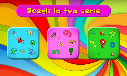 Il gioco si compone di due parti, una in particolare per i bambini fino a cinque anni e uno per anziani . I bambini devono trovare l'elemento che continua la serie indicato , scegliendo tra le opzioni offerte divertimento . La serie per bambini fino a cinque anni , li aiuterà a imparare anche in modo giocoso , diverse forme geometriche , i numeri da 1 a 9 , e vocali , e diversi colori primari.
