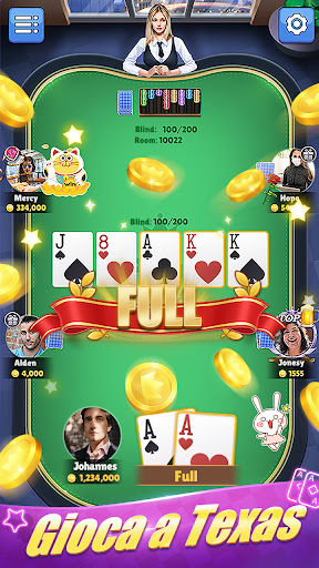 JOJO Poker - texas scopa è un gioco d'intrattenimento solo per adulti. Ottenere successo in questo gioco non significa che sarà ricompensato con denaro reale, né significa che avrà successo nel gioco d'azzardo con denaro reale.