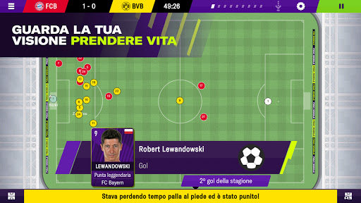 Una volta completati i preparativi prima della partita, prendi posto in panchina e osserva la tua visione tattica prendere vita.