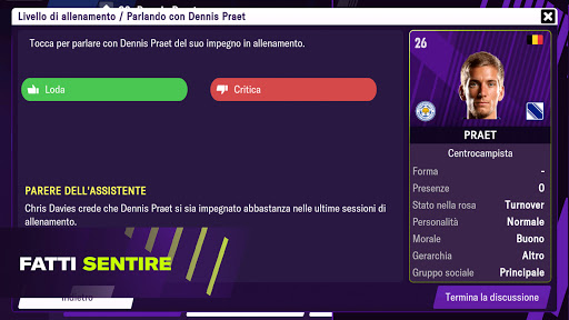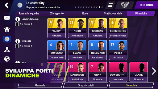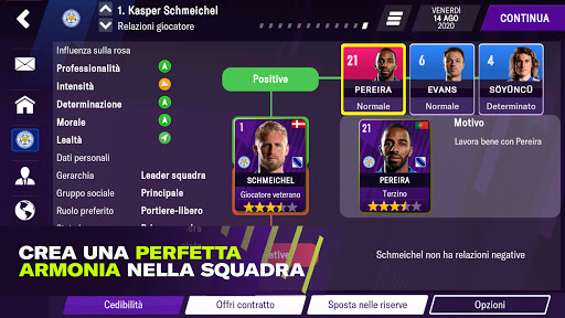 Il nuovo sistema di dinamiche ti permetterà di creare la perfetta armonia in squadra, con più dati relativi alla gerarchia interna e ai legami tra i giocatori. Attraverso il nuovo capitano della squadra, avrai un collegamento ancora più diretto con lo spogliatoio. Sceglilo con attenzione per avere un vantaggio in più il giorno della partita.