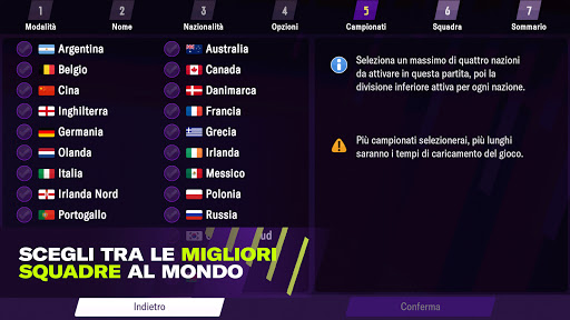 Senti l'entusiasmo mentre crei la tua rosa e il tuo assetto tattico perfetti per vincere trofei, quando e dove vuoi. Con oltre 60 campionati delle 24 principali nazioni calcistiche al mondo, inseguirai la gloria in casa o tenterai la fortuna all'estero?