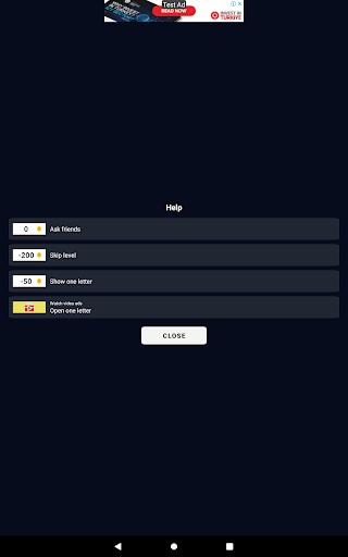Four pictures, letters, a button to display one correct letter. You can skip a level.
