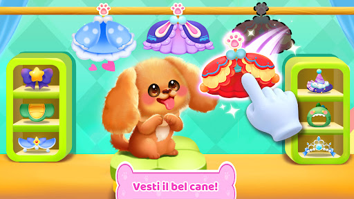 Ora, apri l'armadio e vesti il tuo cane con abiti carini! Per prima cosa, indossa un capo d'abbigliamento e poi scegli una bella pettorina per il tuo cane. Infine, mettigli un cappellino! Fatto! Ora il tuo cane è ancora più carino!
