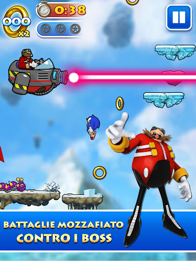 Gioca con Sonic e i suoi amici e salta, ruota e scatta verso il cielo per sconfiggere il Dr. Eggman!