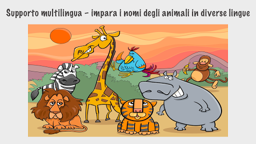 – Supporto multilingua – impara i nomi degli animali in lingue diverse