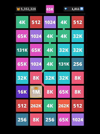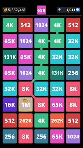 The objective of the is to drag and link the blocks with the same numbers into the higher numbers consecutively with the multiply of the first number of block that you choose. There will be more and more challenges as the numbers go higher e.g. 1024 - 2048 - 4K - 8K - 16K - 32K and to infinity and beyond. I promise you, once you tried it you will not be able to stop playing this puzzle game.