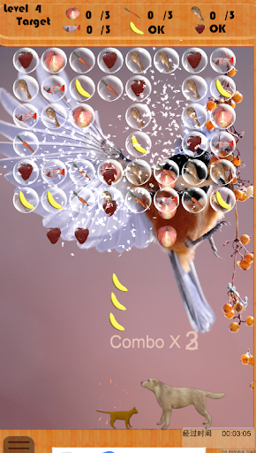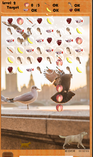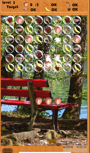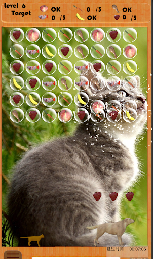 Se muovi tre bolle dello stesso tipo che si connettono l'un l'altro, le bolle scoppieranno e il cibo per animali domestici cadrà.Cuccioli e gatti raccolgono cibo.