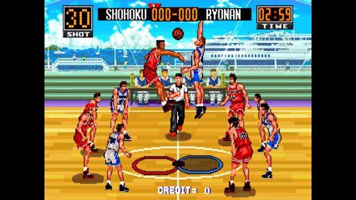 This is 'Slam Dunk' based game. ▶You can play with a friend.(Use NETPLAY. The same wifi connection necessary) ▶Gamepad support ▶Customizable button UI ▶Button Mapping A: Pass/Steal B: Shoot/Jump C: Technical move