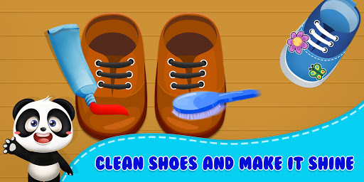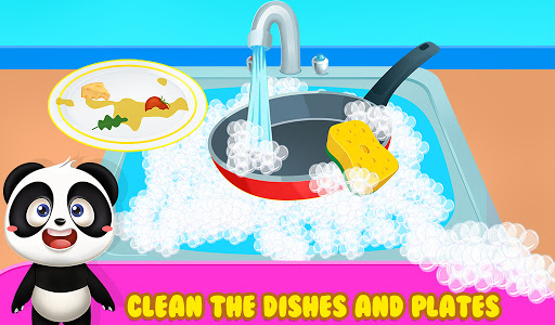 Introduce il simpatico gioco di pulizia della casa Panda per tuo figlio, impara a pulire il disordinato & amp;Casa sporca.