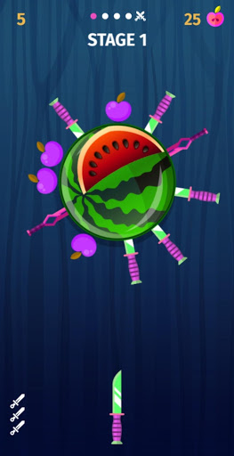 Through the knifes into the logs and break them is main challenge of this game you can also collect the fruits for get new knife.