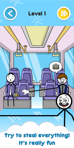 Stickman Thief Puzzle Games è un innovativo gioco di puzzle disegnato a mano in cui puoi giocare come ladro che ruba le cose più insolite. Il personaggio principale non ha paura di assolutamente nulla, quindi ruba gli oggetti proprio di fronte ai proprietari. Aiutalo a completare livelli difficili, non attirare l'attenzione e non lasciare che il reparto vada in prigione.