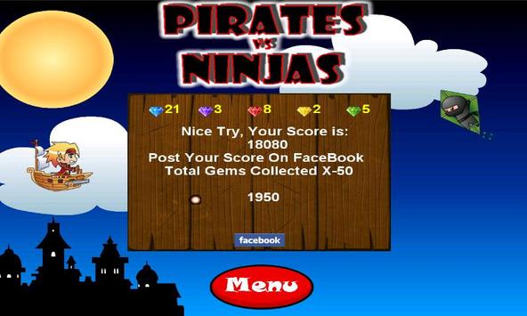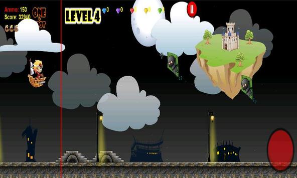 You are a pirate sailing through different levels, fighting off Ninjas on Kites, while shooting Ninja Stars at you, Helicopters, Evil Pirates, and Hidden Ninjas In Clouds, flying through the air trying to kill you, all trying to pass the RedZone, to defeat your Airship. Randomly you will be given the choice to choose from A single Shot, Two Shot Or Three Shot Weapon, each giving you an amount of ammo, Careful you don't run out. Once you've killed all the Evil Enemies, you will have to fight off their Evil Boss, to continue to the next Level.