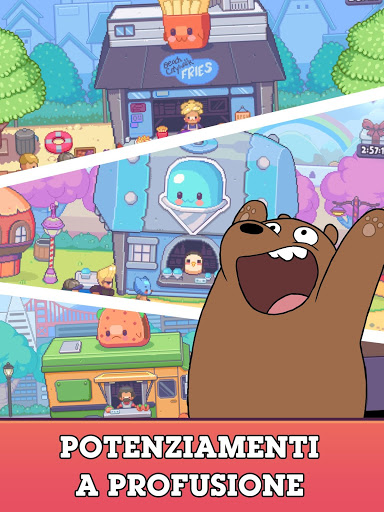 Aumenta il livello dei tuoi eroi e falli evolvere per ottenere versioni ancora più potenti. Ottieni oro da 20 negozi di cibo differenti che potrai sbloccare e potenziare.