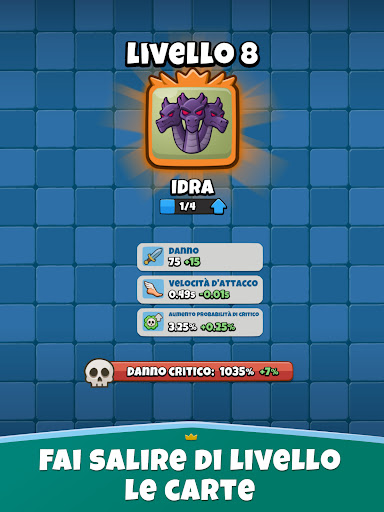 CARTE ABILITÀ: Completa gli eroi del tuo mazzo con l'abilità perfetta: Velocità d'attacco migliorata, Riestrazione, Aumento di energia, Pioggia di meteoriti, Unione potenziata, Instakill: queste sono solo alcune delle carte abilità da collezionare e utilizzare!