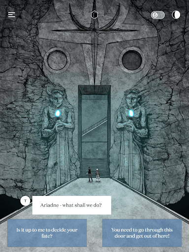 Metti il telefono alla luce per parlare con Teseo o all'ombra parlare con Asterion. Ma fai attenzione: più aiuti uno di loro, più l'altro si perde. Aiutali a prendere le giuste decisioni mentre affronti molti pericoli diversi, scopri i segreti del labirinto e forse riesci a liberarli.