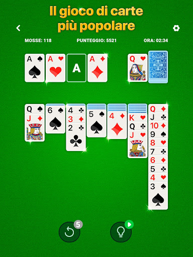Interfaccia semplice e intuitiva. Goditi il Solitario gratis senza pensieri.