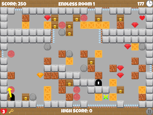 Break through blocks and collect power ups all while avoiding spikes to exit each room.
