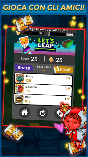 E' molto semplice: con ogni estrazione, condividiamo parte degli introiti derivanti dalla pubblicità con un fortunato vincitore. Quanto più ampia è la nostra base di utenti, tanto più denaro potremo assegnare. Non ci sono acquisti in-app, e non è necessario pagare per vincere. Abbiamo chiamato il nostro modello "Free-2-Win", e ne siamo orgogliosi, quindi scarica Let's Leap e prova a vincere denaro gratis! Perché giocare ad altro?