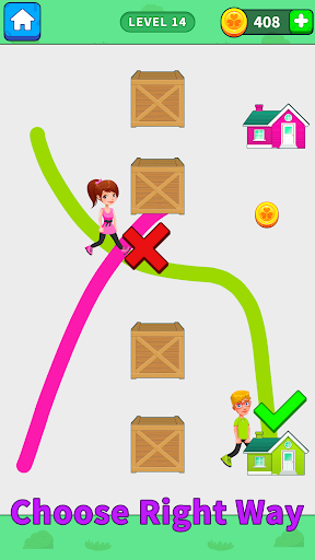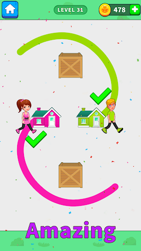 Basta toccare il dito e disegnare le linee. Fai attenzione a stare lontano da auto, ladri, colonne di sollevamento e casse di legno nell'altra metà. Fai la strada migliore per casa che è più chiara e aiuta. Ci sono scatole di legno e altri ostacoli nel percorso che ti faranno fallire, ma tutto ciò che serve è tracciare un percorso che superi queste scatole di legno e ostacoli e faccia tornare il cattivo a casa liberamente in questo pareggio in casa. Draw to home full è un'idea unica di disegnare l'altra metà dei giochi puzzle e un gameplay interessante. quindi sii pronto a rimanere bloccato a casa e fallire, ma non mollare mai.