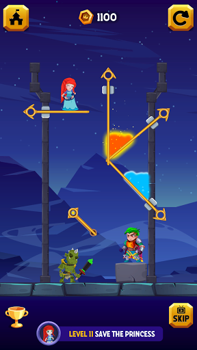 Hero Rescue: Pull the Pin-How to Loot Game is the latest and most addictive puzzle game, where the challenge is to rescue the princess by using your best moves and strategies to pull the pin and manage water and lava fire efficiently to kill the demons enemies, and rescue the princess as well as collect the treasure coins, which you can use to build your own great kingdoms.
