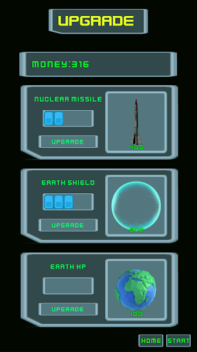 when you destroy aliens collect money and upgrade earth for shield and nuclear missiler.