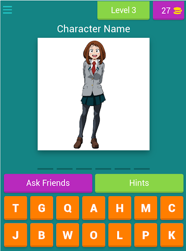 - Scrivi il nome del mio Hero Academia Cast usando le 14 lettere mostrate - Il livello successivo si aprirà quando il nome della stella scrittaè corretto.