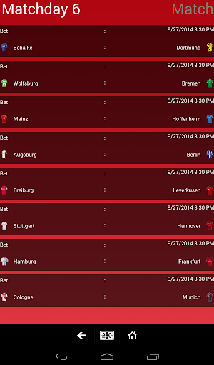 Bundesliga is the perfect companion for the German Football Championship. Predict on all games in the Bundesliga competition and become the prediction king. Due to the clear match plan you are up to date on all the matches. Also, results of past matches can be viewed.
