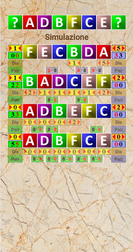 Trova un ordine casuale di lettere o colori in un minimo di test e tempi.