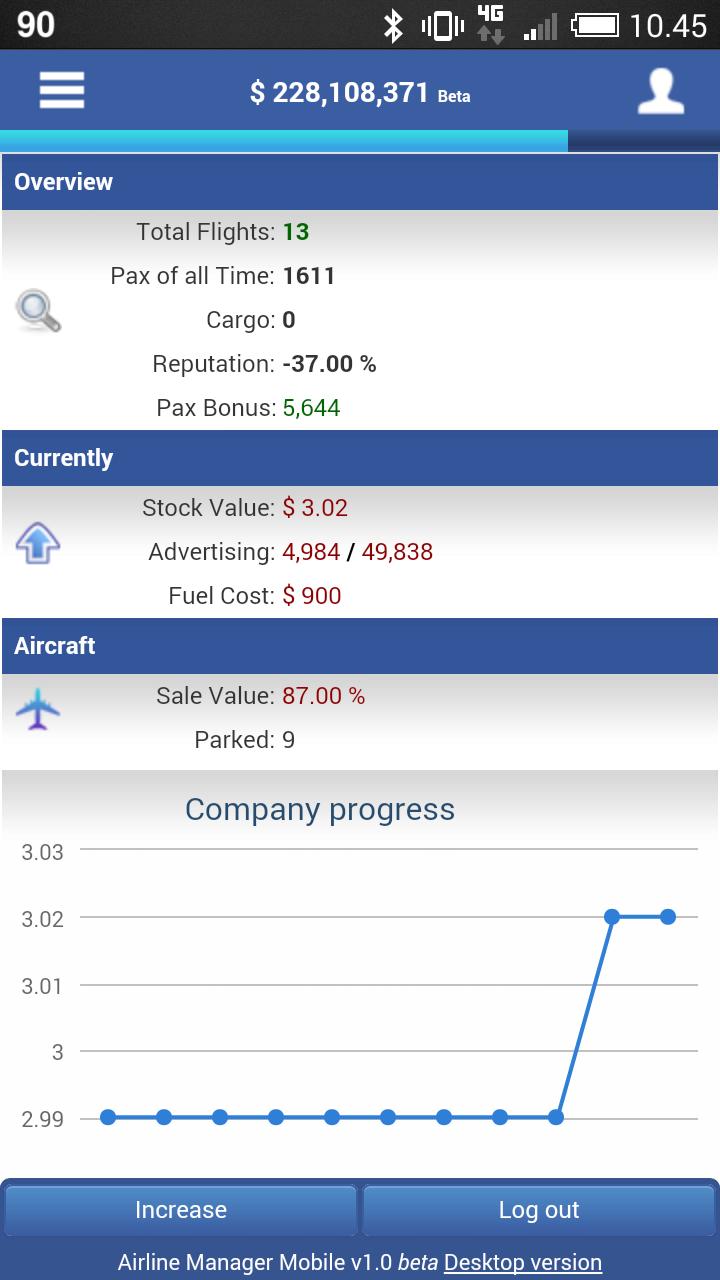 Another approach to earn money is the stock market, where you may invest in other airlines, either owned by your friends, or by strangers.