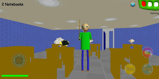 In Basic Education & Learning in School game you need to collect all the laptops, solve the problems correctly and run away from school.