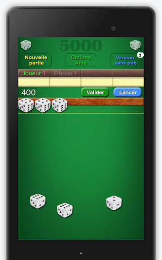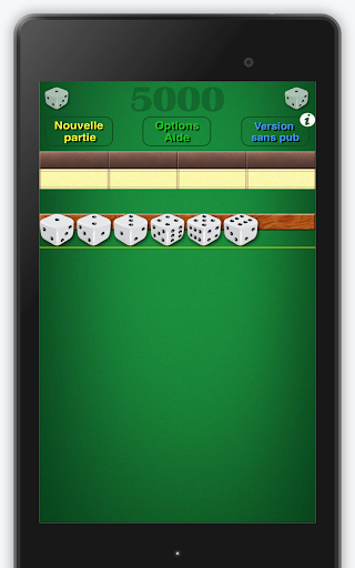 Il gioco 5000 è un gioco di cub molto popolare che esiste in molte forme. Questa versione utilizza 6 dadi e alcuni criteri possono essere adeguati per soddisfare le varie regole esistenti dal mondo.