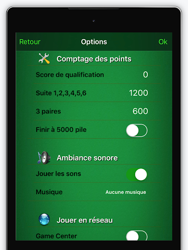 Opzioni: Varie Opzioni sono proposte all'importazione Le parti o per adattare il gioco alle regole che sei abituato a praticare.