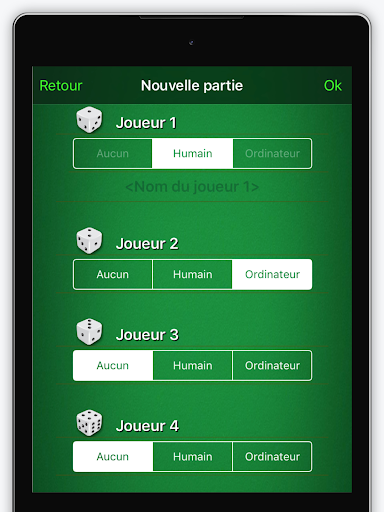 Per mettere in riserva, toccare il dado o spostarlo nella casella superiore del tappeto.