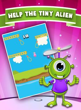 Il nostro eroe alieno è caduto sulla Terra. Egli non può sopravvivere li. Aiutatelo a rialzarsi e a passare tra gli ostacoli in movimento. Ogni ostacolo sorpassato vi darà un punto. Otterrete il punteggio più alto in questo gioco arcade da dipendenza. Potete darlo ai bambini. E’ adatto per tutte le età.