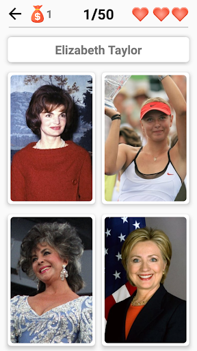 Il gioco ha 2 livelli, tutte le donne famose sono divise in categorie: