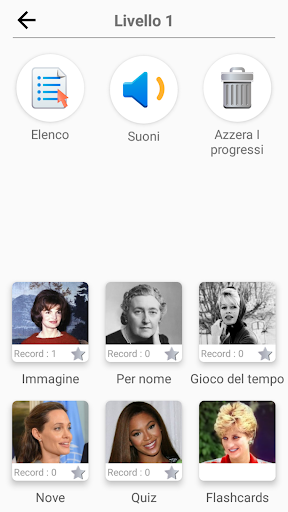 1) Livello 1 (semplice): 50 grandi donne. Marie Curie, Madonna e altri scienziati, politici e attrici.