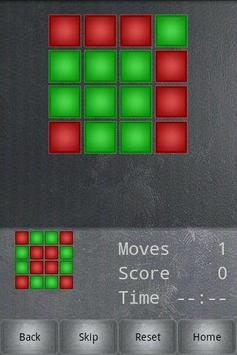 Players match a given grid pattern by touching grid squares and flipping the square's color along with all the colors of the adjacent squares. As the patterns increase in complexity, players are challenged to use multiple moves in order to solve more difficult grid patterns.