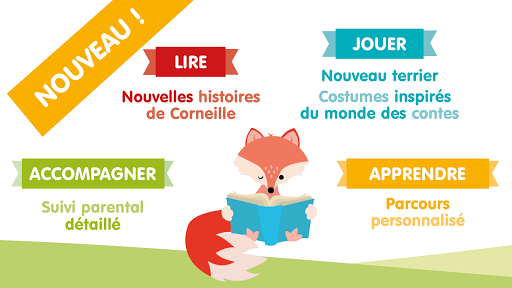 Corneille è un'applicazione di apprendimento della lettura giocosa e innovativa. Offre un corso personalizzato al 100% per ogni bambino, da 3 anni, nonché il follow-up dei genitori che dettaglia i progressi di ciascun utente.