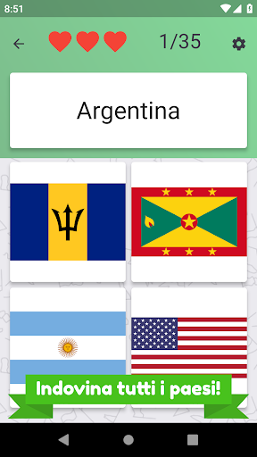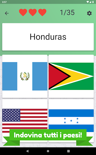 - 1 paese e 4 bandiere - Indovina la bandiera per nome del paese.