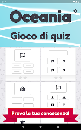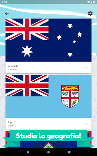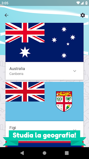 Studia la geografia dell'Oceania e dell'Australia e preparati per gli esami e il test scolastico con la nostra app "Oceania e Australia quiz - paesi, mappe e bandiere" in Oceania e Australia. Centinaia di domande per metterti alla prova!