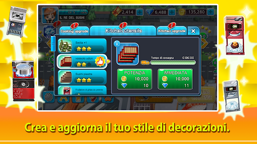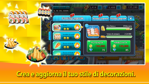 Per giocare a Cooking Sushi King è necessaria una connessione a Internet. Il gioco utilizza una piccola quantità di dati per funzionalità come i premi di oggi, la riparazione di progressi di gioco danneggiati, tornei, sfide e altri miglioramenti del gameplay.