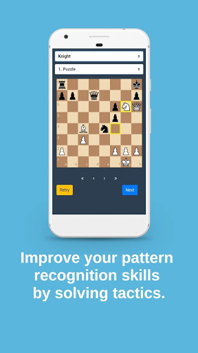 This app contains a mate tactical puzzles in a total of over 2000 moves. By solving these questions, you can improve your pattern recognition skills. You can see your mat moves faster in your games. The application is completely free. Tactics can be solved offline or online.