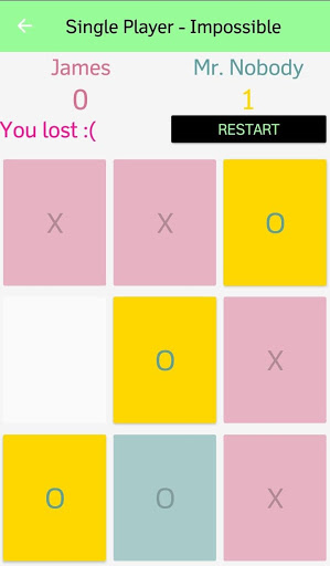 The traditional Tic-Tac-Toe game, try to beat 'Mr. Nobody' in the impossible mode. And yeah don't forget to have fun!